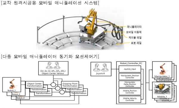 - 다중 모바일 매니퓰레이터 동기화 모션제어기 : 다중 매니퓰레이터의 작업에 대한 동작을 서로 동기화하는 제어기
