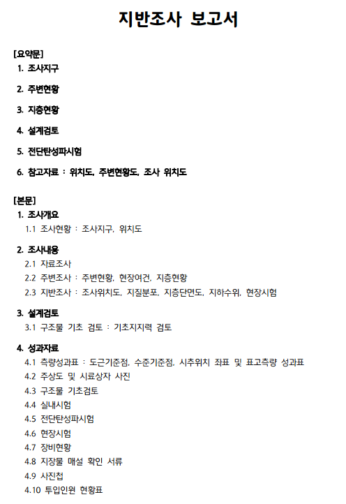 - (다운로드) 지반조사 보고서 목차(예시).png . . 496 × 722 . . 70 KB . . Choi-SA . . 2023년 8월 28일 (월) 17:01